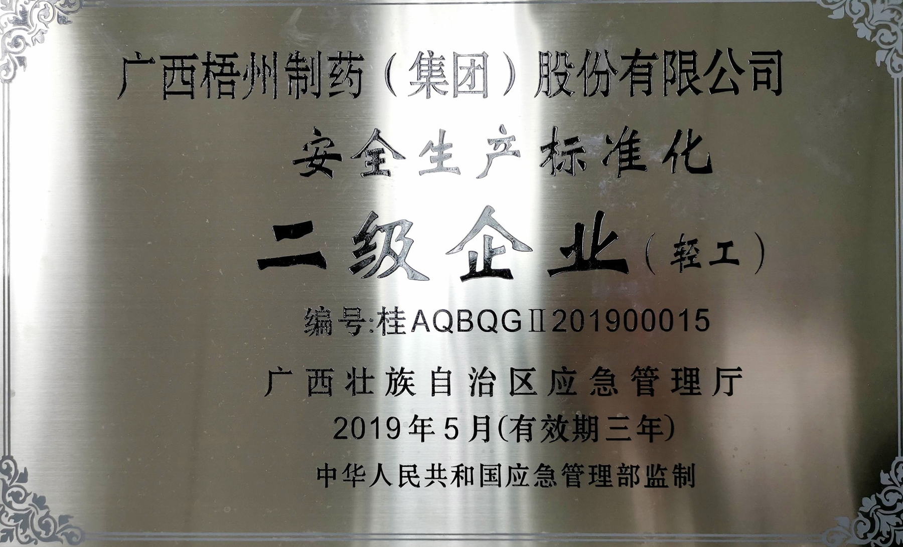 榮獲安全生產(chǎn)標(biāo)準(zhǔn)化二級企業(yè)(輕工)稱號