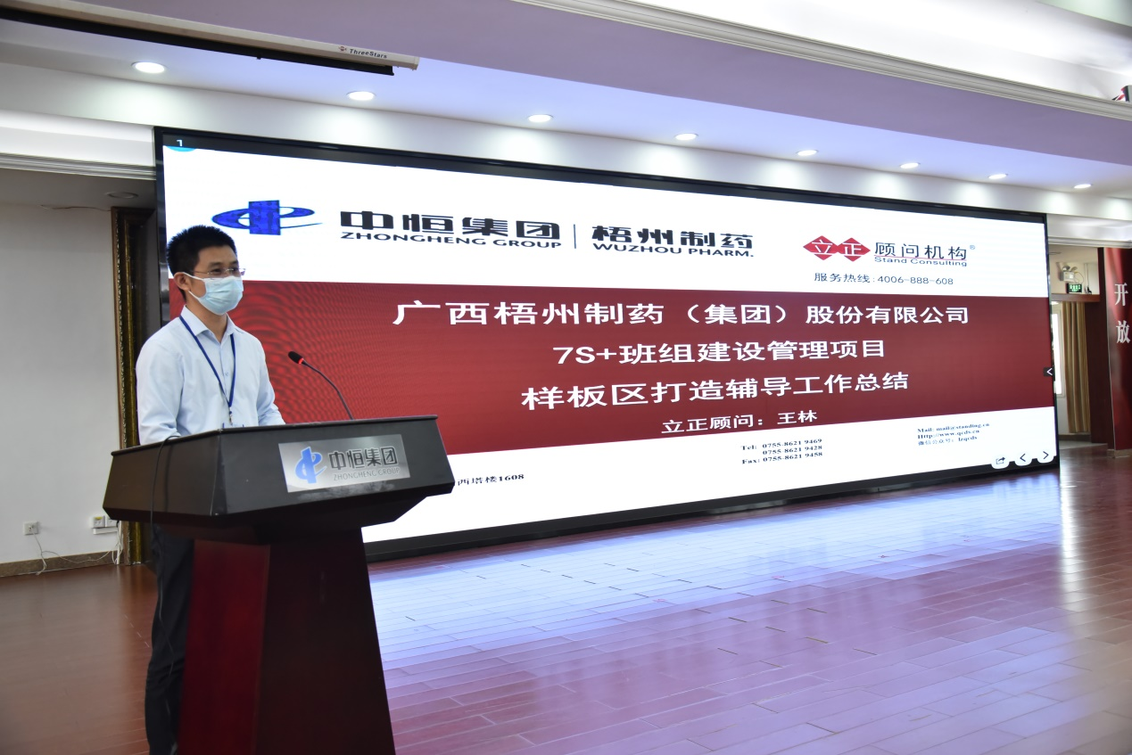 王林顧問為本次7S樣板區(qū)打造輔導(dǎo)工作總結(jié),肯定了10個(gè)樣板區(qū)取得的成績,提出了樣板區(qū)細(xì)節(jié)提升建議,并對后續(xù)7S管理推廣工作安排進(jìn)行簡要說明。