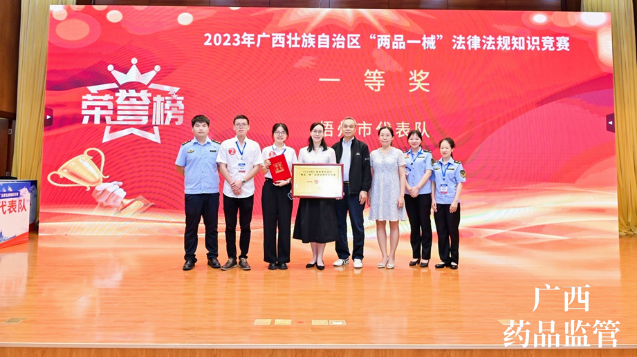 7月13日,由梧州制藥員工代表——質(zhì)量控制部呂金慧、質(zhì)量保證部李佳霖與梧州市場(chǎng)監(jiān)督管理局監(jiān)管人員組成的梧州市代表隊(duì)參加廣西壯族自治區(qū)“兩品一械”法律法規(guī)知識(shí)競(jìng)賽,憑借過硬的專業(yè)知識(shí)、迅速的反應(yīng)能力、高效的團(tuán)隊(duì)配合力,與全區(qū)14個(gè)市代表隊(duì)展開激烈角逐,榮獲得2023年廣西壯族自治區(qū)“兩品一械”法律法規(guī)知識(shí)競(jìng)賽一等獎(jiǎng)。