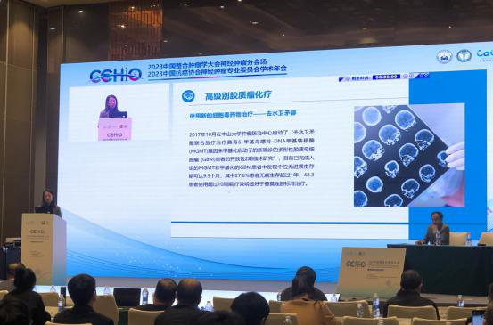會上,中山大學(xué)腫瘤防治中心郭琤琤教授為注射用去水衛(wèi)矛醇納入《膠質(zhì)瘤化療中國專家共識》進(jìn)行詳細(xì)的解讀。她表示,去水衛(wèi)矛醇主要作用機(jī)制是由-鳥嘌呤DNA烷化,具有不受MGMT影響,對膠質(zhì)瘤細(xì)胞增殖有較高抑制率,血腦屏障(BBB)通過率較高等優(yōu)點(diǎn)?!叭ニl(wèi)矛醇聯(lián)合放療治療具有-甲基鳥嘌呤-DNA甲基轉(zhuǎn)移酶 (MGMT)基因未甲基化啟動(dòng)子的新確診的多形性膠質(zhì)母細(xì)胞瘤 (GBM)患者的開放性2期臨床研究”項(xiàng)目顯示:MGMT非甲基化的GBM患者中發(fā)現(xiàn)中位無進(jìn)展生存期可達(dá)9.5個(gè)月,其中27.6%患者無病生存超過1年,48.3%患者使用超過10周期。為醫(yī)師在臨床應(yīng)用中提供更多的依據(jù),有機(jī)會提高M(jìn)GMT非甲基化的膠質(zhì)瘤患者療效,增加患者生存獲益。