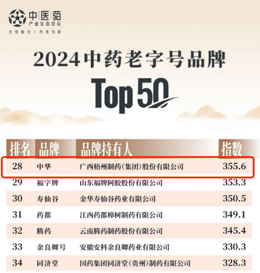 成立以“全國五一勞動獎?wù)隆薄叭珖逡唤韼綐?biāo)兵”“廣西工匠”獲得者雷潔萍命名的勞模工匠人才創(chuàng)新工作室,不斷壯大傳承人隊伍,目前中華跌打丸制作技藝已傳承至第五代,推動“中華”品牌代代相傳?!爸腥A”品牌曾入選2023年“中國500最具價值品牌”,估值100.06億。