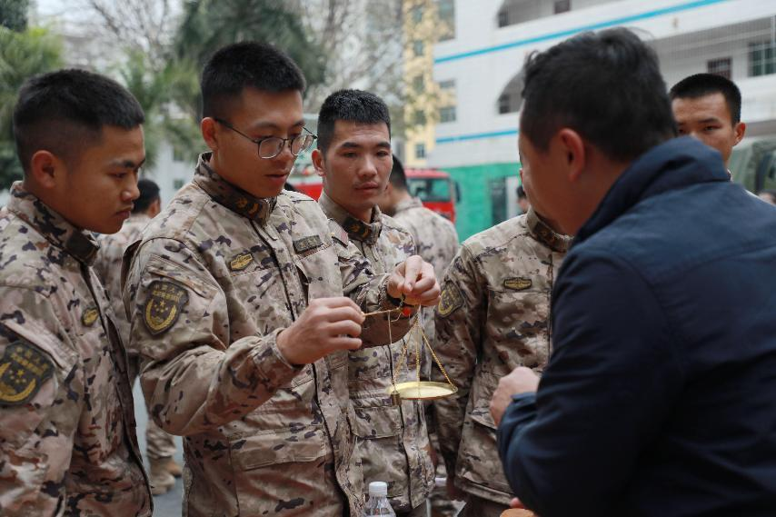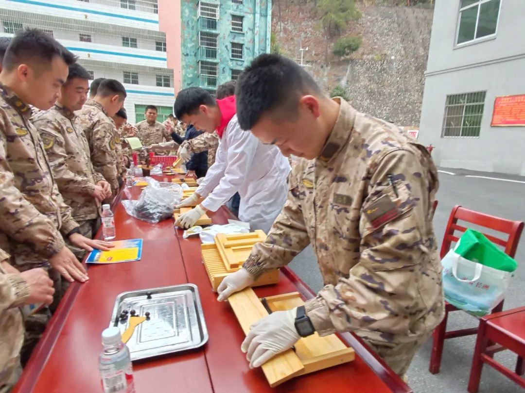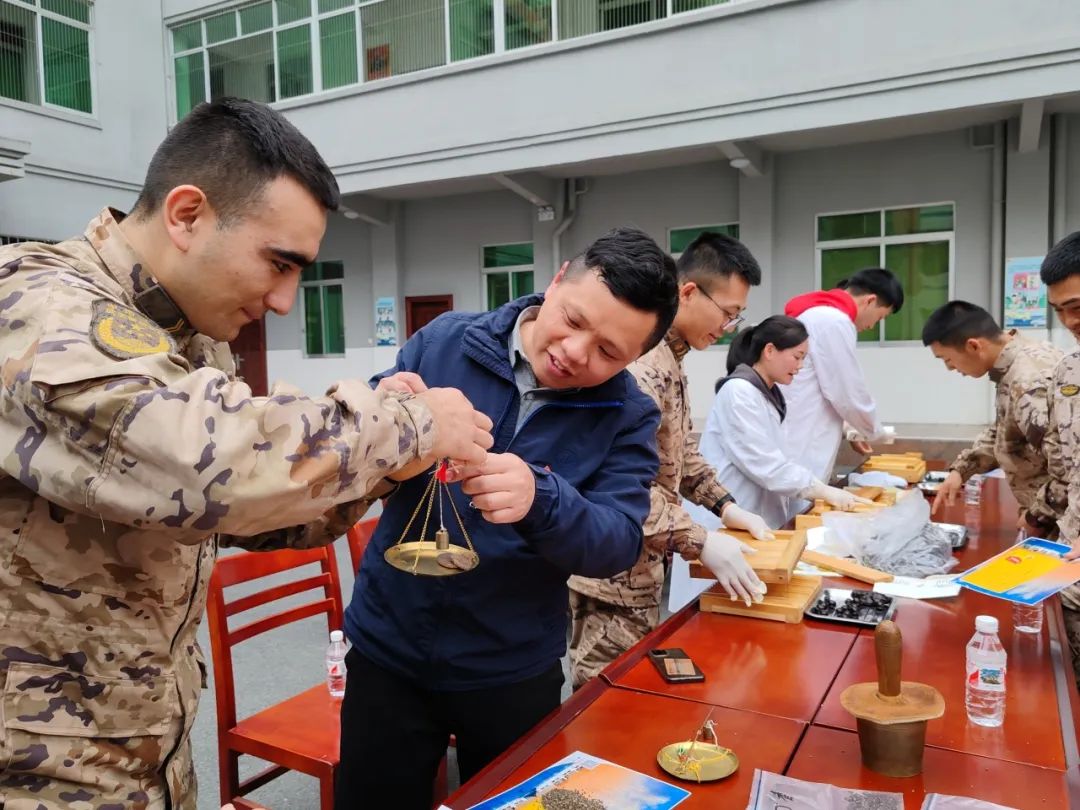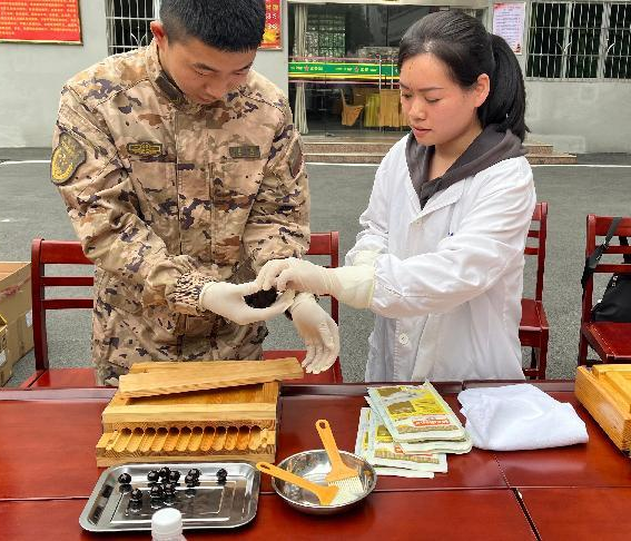 戥子、杵臼、搓丸板,這些平日很少接觸到的中藥傳統(tǒng)制藥工具,觸發(fā)起武警官兵們強(qiáng)烈的好奇心和探知欲,興致勃勃地嘗試操作,紛紛參與體驗(yàn)中華跌打丸制作技藝,從制丸條到成功搓制成丸,每一道工序無不感受著非遺文化獨(dú)特的魅力。