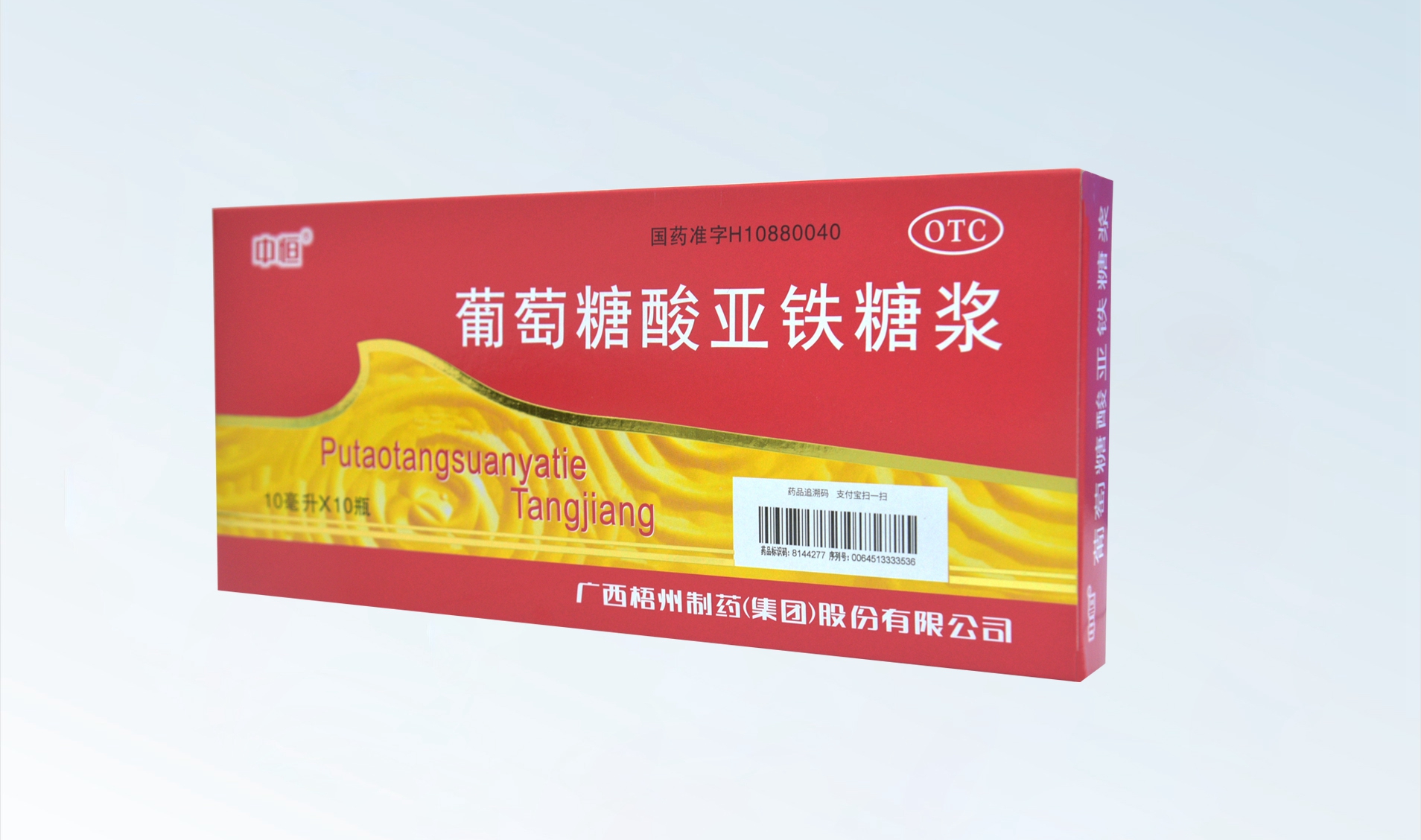 【成 份】本品每瓶含葡萄糖酸亞鐵0.30克。輔料為蔗糖、枸櫞酸、枸櫞酸鈉、羥苯乙酯、苯甲酸、香精。