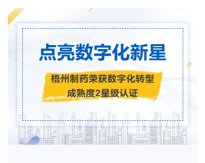 點(diǎn)亮數(shù)字化新星梧州制藥榮獲數(shù)字化轉(zhuǎn)型成熟度2星級認(rèn)證摘要近日,數(shù)字化轉(zhuǎn)型貫標(biāo)工作委員會公布第十九批數(shù)字化轉(zhuǎn)型貫標(biāo)星級評估結(jié)果,廣西梧州制藥(集團(tuán))股份有限公司憑借扎實(shí)的轉(zhuǎn)型實(shí)踐與顯著成效,成功獲評數(shù)字