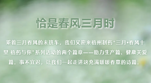 恰是春風(fēng)三月時(shí)乘著三月春風(fēng)的末班車(chē),我們又迎來(lái)梧州制藥“三月?春風(fēng)十里 梧藥與你”系列活動(dòng)的兩個(gè)篇章——助力生產(chǎn)篇、健康關(guān)愛(ài)篇。事不宜遲,讓我們一起走進(jìn)這充滿暖暖春意的詩(shī)篇。【助力生產(chǎn)篇】凝聚“志愿紅”協(xié)力助